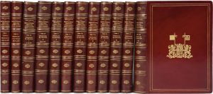 (Reliure de l'époque). Édition originale de cette extraordinaire série complète, divisée en trois parties : I. Ciencia heraldica o del blason segun el metodo de los mas insignes tratadistas. - II. Diccionario de los terminos del blason, métodos de blasonar, inidice de lemas heraldicos. - III. Diccionario heraldico y genealogico de apellidos espanoles y americanos. Cette monumentale entreprise n'a pas d'équivalent réel pour la France : l'ouvrage, illustré de nombreuses planches en couleurs, recense les armes de la plupart des familles hispaniques. Tirage à 500 exemplaires numérotés à la presse. Rarissime exemplaire en reliure aux armes uniforme. Bel envoi de l'auteur. Disparate de teintes aux reliures. Palau, n°98580.