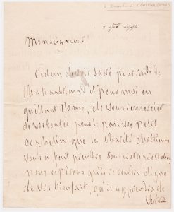 François-René de Chateaubriand. 1768-1848. Ecrivain. L.A.S. à Monseigneur. Paris, 16 octobre 1829. 2 pp. ^ bi-feuillet in-4. Jolie lettre au moment du départ de Chateaubriand de son ambassade à Rome ; l’écrivain adresse ses encouragements...