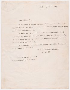 au verso, timbre et marques postales, taxée pour affranchissement insuffisant. Lacordaire l’assure de son accueil au couvent de St- Maximin aussitôt qu’il sera de retour en France ; (.) Je suis convaincu que vous pourrez faire beaucoup de bien en France et à la province. Dans l’état où en sont les choses, il ne faut plus que du temps et de bons exemples pour assoir cette œuvre sur des bases iné- branlables (.).