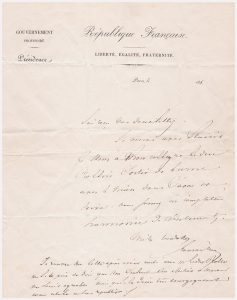 Alphonse de Lamartine. 1790-1869. Ecrivain poète. L.A.S. à Mme Pierreclos à Macon. Paris, (5 avril 1848). 1 pp. bi-feuillet in-4, en-tête de la « Présidence » du Gouvernement provisoire de la République, adresse au verso, marques postales....