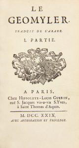 [Villars (Abbé de Montfaucon de). Le Geomyler traduit de l’arabe. Paris, Guérin, 1729. 2 parties de [2]-10-190 ; 6-207 pages, veau marbré, dos à nerfs orné (Reliure de l’époque).
