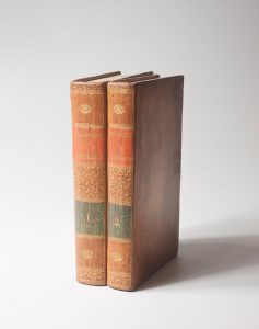 titre touge et de tomaison verte frottée (reliure de l'époque). Édition originale de la traduction française, ornée de deux frontispices gravés repliés, d'un tableau replié et d'une carte repliée de la plaine de Troie, gravée par Gaitte.