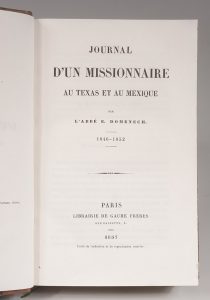 Domenech (abbé). Journal d’un missionnaire au Texas et au Mexique, 1846-1852. Paris, Gaume, 1857. In-8, demi-veau fauve, dos à nerfs orné (reliure de l’époque). Une carte dépliante. Ex-dono à Renaud de Montaignac de Chauvance par son cousin...