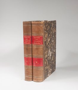 Enquête Parlementaire sur la situation et l’organisation des services de la marine militaire. Paris, Imprimerie nationale, 1852. 2 vol. in-4, demi-veau havane, dos lisse orné, pièces des titres et tomaison rouges. Un coin rogné, frottements....