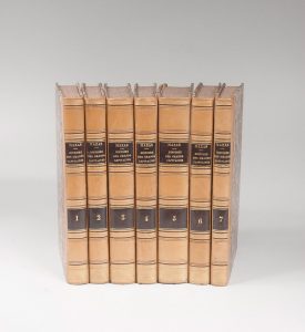 Mazas (Alexandre). Vies de grands capitaines français du Moyen-Age. Paris, Eugène Devenne, 1828-1829. 7 vol. in-8, demi-veau blond, dos lisse orné, pièces de titre et de tomaison brune (reliure postérieure). Édition originale. Quelques petits...
