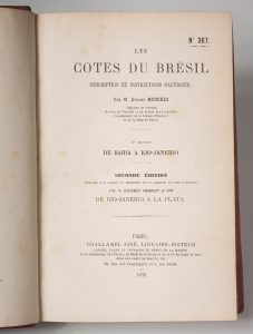 Mouchez (Ernest, Amiral). Les Côtes du Brésil. Description et instructions nautiques, 2ème section : de Bahia à Rio-Janeiro. Paris, Challamel ainé, 1876. In-8, demi-chagrin à coins, dos à nerfs orné (reliure de l’époque). Seconde édition...