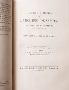 d'un officier de l'expédition, par Louis Reybaud (1840). - Quelques semaines dans l'archipel de Samoa, les iles des navigateurs de Lapeyrouse, par Lafond de Lurcy (1845). - [Mémoire sur] Saint-Domingue (1843)... Épidermures. Ex-libris Gueutteville.