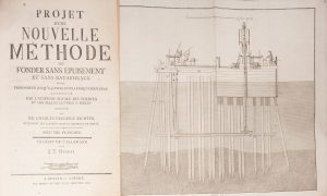Richter (Charles-Frédéric). Projet d’une nouvelle méthode de fonder sans épuisement et sans batardeaux d’une profondeur jusqu’à trente pieds reinlandiques sous l’eau. Berlin, Birnstiel, 1765. In-folio, cartonnage de l’époque. 8...