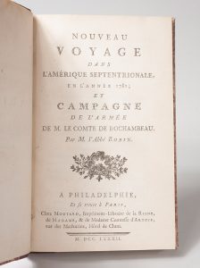 Robin (Abbé Charles). Nouveau Voyage dans l’Amérique Septentrionale en l’année 1781 ; et Campagne de l’armée de M. le Comte de Rochambeau. Philadelphie, Paris, Moutard, 1782. In-8, demi-veau cerise, dos lisse orné de filets à froid et...