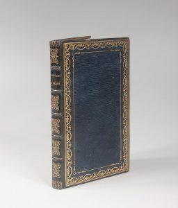 Enghien. — Discours funèbre prononcé (.) pour le repos de l’âme de Sas Mgr le duc d’Enghien. Londres, Imprimerie Cox, mai 1804. In-8, maroquin à long grain bleu nuit, élégant encadrement doré, dos à nerfs orné sur fond pointillé,...