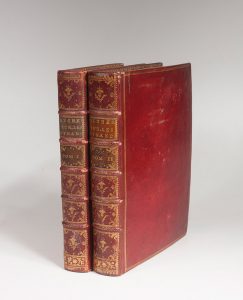 nerfs orné, pièces de titre fauve et de tomaison brunes, tranches dorées (Reliure de l'époque). I) VIII pp., 594 pp., 3 tableaux dépliants hors-texte - défauts de papier en marge pp. 577-578 ; II) viii pp., 662 pp., 13 tableaux dépliants hors-texte. Edition originale du plus important ouvrage de Véron de Forbonnais, inspecteur général des monnaies, décryptant l'évolution de la fortune publique en France, depuis Sully jusqu'à Law. Cet exemplaire comprend 2 feuillets d'errata et un Avis au relieur compris dans la pagination, non signalés par les bibliographies spécialisées. INED, 4441 ; Kress, 569. Très bel exemplaire de cet ouvrage rare. Ex-libris Paul Blain. Plats et nerfs frottés.