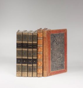: LUBERSAC (abbé de). Journal historique et religieux de l'émigration et déportation du clergé de France en Angleterre. Londres, Cox, 1802. In-8, veau blond, décor d'encadrement noir et doré sur les plats, dos à nerfs orné de fleurs de lys (reliure de l'époque). Ex-libris Gueutteville. Défauts à la reliure. [BARRAL (Matthieu de)]. Réponse à un écrit intitulé Éclaicissements demandés à monsieur d'archévêque d'Aix [M. de Boisgelin] par un prêtre catholique francais [abbé de Château-Giron]. Londres, Lhomme, 1802. In-8, veau fauve, encadrement de double filet doré, cadre de papier marbré doré, dos lisse avec nom en long (reliure de l'époque). Deuxième édition augmentée.