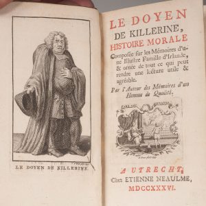 [Prévost d’exiles (François)]. Le Doyen de Killerine, histoire morale, composée sur les Mémoires d’une Illustre Famille d’Irlande... Utrecht, Amsterdam, Étienne Neaulme, Châtelain, 1736-1742. 6 parties en 3 volumes in-12, plein veau, dos...