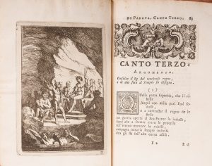 (Reliure de l'époque). Édition originale rare de ce long poème didactique évoquant l'incendie en 1749 de la basilique gothique de Padoue. Elle est illustrée d'un titre gravé, 7 vignettes d'en-tête, et 6 jolies gravures numérotées hors-texte, allégories de l'Enfer descendu sur terre et l'incendie. Petits accrocs au second plat, et charnières frottées.