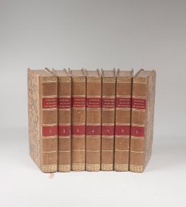 Vertot. Histoire des chevaliers hospitaliers de Saint-Jean de Jérusalem, appelés depuis chevaliers de Rhodes et aujourd’hui chevaliers de Malthe. Paris, Bailly, 1778. 7 vol. in-12, demi-veau havane, dos lisse orné, pièces de titre et de...