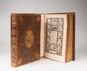 édition dont le premier volume est imprimé dans le nouveau caractère de civilité du au typographe Pierre Moreau, tandis que le deuxième est imprimé en italiques. Elle comprend pour la première fois la traduction de Perrin en regard du texte latin et est illustrée de 2 frontispices et 12 belles gravures d'Abraham Bosse in-texte. Exemplaire aux armes du marquis de Butay (arbre arraché), selon une note de Goldsmith. Tome I, mouillure marginale. Tome II, rousseurs uniformes, coiffes arrachées. Reliure frottée.