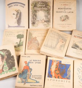 Aphrodyte. Cyral, 1929. Ill. par Pierre Rousseau. Quelques rousseurs. COURTELINE (Georges). Le Train de 8h47. Éditions du Nord, 1929. Ill. de Joseph Hémard. LA FONTAINE. Contes et nouvelles. Cyral, 1929. Ill. par Daniel Girard. 2 vol. TOULET. Mon amie Nane. Éditions du Nord, 1930. lll. par Chas Laborde. ALAIN-FOURNIER. Le Grand Meaulnes. Éditions du Nord, 1933. Ill. par Berthold Mahn. CARCO. De Montmartre au quartier latin. Éditions du Nord, 1928. Ill. par Dignimont. MORAND. Rien que la terre. Éditions du Nord, 1929. Ill. par Pierre Falké. LOTI. Le Roman d'un spahi. Éditions du Nord, 1930. Ill. par Canneel.