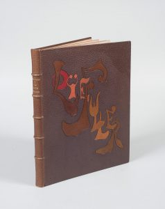 Pierre Roche, publié en hommage à la célèbre danseuse Loïe Fuller, et dans lequel fut employée pour la première fois la technique d'impression appelée gypsographie, pour les 18 illustrations. Tirage à 130 exemplaire, celui-ci n°43 imprimé pour Mr Charles Gadala. Dos légèrement passé, petites mouillures sur les plats.