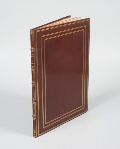 Rostand (Edmond). La Brouette. Paris, 1903. In-4, maroquin brun, septuple filet doré et à froid en encadrement, dos à nerfs orné, doublure de maroquin bleu-roi avec large encadrement de palmettes mosaïquées, tranches dorées, chemise et étui...