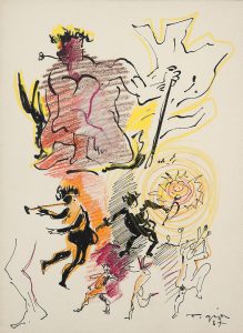 Une aquatinte sur la couverture, 6 planches gravées à l’eau-forte et à l’aquatinte, et 20 bois dans le texte par Édouard Pignon. Un des 15 exemplaires de tÊte sur japon nacrÉ, contenant une suite sur chine des 20 bois, une suite sur japon des eaux-fortes, une suite de 9 eaux-fortes refusées, une suite de 6 planches en couleurs et une composition originale en couleurs. Manque le cuivre.