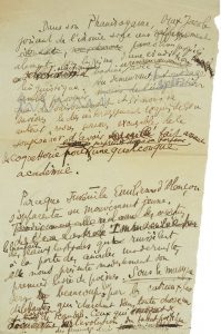 Manuscrit autographe de premier jet de Guillaume Apollinaire avec de nombreuses ratures et corrections concernant en partie la critique du Phanérogame de Max Jacob. ^ « Dans son Phanérogame, Max Jacob jouant de l'ironie avec un raffinement jusqu'ici alimenté d'un lyrisme, d'une érudition badine avec la linguistique^ Si nous ne savions le désintéressement exquis de son auteur, nous serions excusables de le soupçonner, d'avoir fait assaut de coquetterie pour une quelconque académie. »^ L'on joint un exemplaire de l'édition originale du Phanérogame, publiée à Paris en 1918.