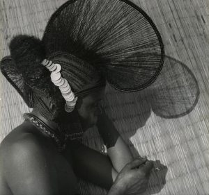 BELLON Denise. JEUNE AFRICAINE À LA COIFFE. PHOTOGRAPHIE ORIGINALE. [1939]. 23 x 23,3 cm, sous encadrement.
