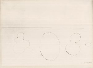 BRANCUSI Constantin. FORMES. DESSIN ORIGINAL SIGNÉ. 1928 ; 28,2 x 37,9 cm, sous encadrement.