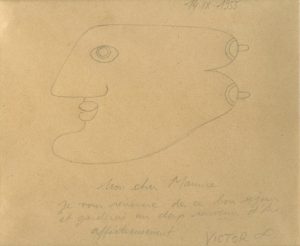 Dessin original au crayon sur papier de Brauner daté, signé Victor et dédicacé à Maurice Foinet. Maurice Foinet, collectionneur, mécène et marchand d'art, fut l'ami des artistes, dont Man Ray et Brauner.