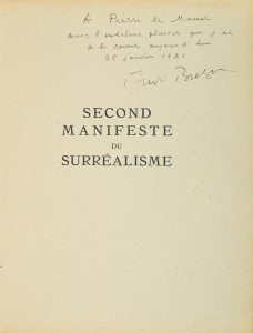 Edition originale. Exemplaire de Pierre de Massot : « Avec l'extrême plaisir que j'ai à le revoir aujourd'hui 26 janvier 1931. André Breton ». André Breton a dû oublier qu'il avait un jour cassé le bras de Pierre de Massot d'un coup de canne.