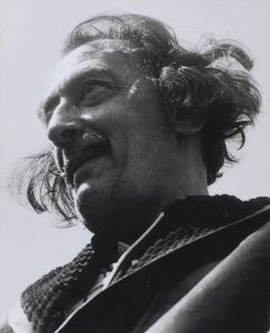 [DALI Salvador]. PORTRAIT DE SALVADOR DALI. PHOTOGRAPHIE ORIGINALE SIGNÉE. Milan, circa 1960. 30 x 24,2 cm, sous encadrement.