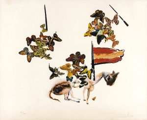 DALI Salvador. CHEVALIER AUX PAPILLONS. ANAMORPHOSES. LITHOGRAPHIE ORIGINALE SIGNÉE. W.U.C.U.A., 1963. 56,5 x 76,5 cm, sous encadrement.