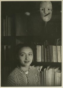 Tirage argentique d'époque, représentant Nusch Eluard devant la bibliothèque au 35 rue de La Chapelle vraisemblablement de Brassaï à l'époque où il fit toute une série de photos d'Eluard.