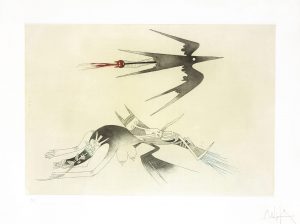 LAM Wifredo. CONTRE UNE MAISON SÈCHE. EAU-FORTE SIGNÉE. 1976. 38 x 55 cm (dimensions de la cuvette), sous encadrement.
