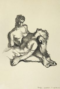 PÉRAHIM Jules. COUPLE. DESSIN ORIGINAL SIGNÉ. Moscova, 1946. 27 x 18,5 cm, sous encadrement.