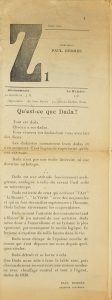 REVUE. Z. Directeur : Paul Dermée. Paris, Au Sans Pareil, 1920. Double feuillet in-4 imprimé recto-verso.