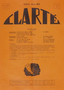REVUE. CLARTÉ. Paris, numéros 1 à 79 de novembre 1921 à janvier 1926 pour la première série, 79 fascicules in-4 agrafés ; numéros 1 à 16 de juin 1926 à décembre 1928 pour la nouvelle série, 16 fascicules in-4 agrafés ; sous 5 chemises...