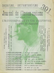 Textes de Picabia, Mesens, Magritte. Dernier numéro de 391 comportant à pleine page le portrait en vert de Rrose Sélavy (Marcel Duchamp). Ce portrait est en fait celui du champion de boxe Georges Carpentier que Picabia avait dessiné au Tremblay. Frappé par sa ressemblance avec Marcel Duchamp, Picabia avait raturé la signature de Carpentier et ajouté : portrait de Rrose Sélavy. Non plié.