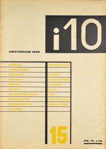 REVUE. I10. Internationale Revue. Rédacteur en chef : Arthur Müller Lehning. Amsterdam, numéro 15 de 1928. Grand in-4 agrafé, couverture conçue par Domela Nieuwenhuys.