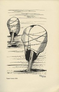 Edition originale de cette anthologie proposant des textes et illustrations de F. Bidlo, K. Biebl, E. F. Burian, F. Halas, A. Hoffmeister, J. Horejsi, J. Jezek, K. Conrad, J. Kratoshvil, M. Majerova, H. Malirova, S. K. Neumann, V. Nezval, J. Noha, L. Novomesky, I. Olbracht, A. Pelc, M. Pujmanova, J. Styrsky, K. Teige, Toyen, V. Vancura, J. Voskovec, J. Verich. L'exemplaire porte les signatures de tous les participants dont Toyen et Styrsky, sauf celles de J. Jesek et K. Teige qui assura la typographie.