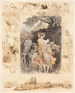 BALZAC (Honoré de) - ROBIDA (Albert). LA CONNESTABLE. Conte imagé, gravé et enluminé par Albert Robida. PARIS, Imprimé pour Charles Meunier, 1914. Un volume, in-4, en feuilles sous chemise portefeuille de l’éditeur. Titre doré en long sur...