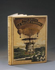 DES GACHONS (Jacques) - ROBIDA. LE BALLON FANTÔME. TOURS, MAMÉ, s. d. (1910). Un volume, in-4, cartonnage éditeur polychrome, premier plat illustré d’une montgolfière. Bel exemplaire. Frontispice et nombreuses illustrations dans le texte de...