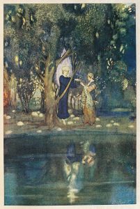 KHAYYAM de NAISHAPUR (Omar) - POGANY (Willy). RUBAIYAT. LONDON, George HARRAY, s. d. (vers 1912). Un volume, in-4, pleine reliure à la bradel en vélin rigide. Titre doré sur le dos dans un encadrement de filets dorés et de perles de couleurs....