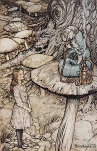 LEWIS (Caroll) - RACKHAM. AVENTURES D’ALICE AU PAYS DES MERVEILLES. PARIS, HACHETTE, s. d. (1 907). Un volume, in-4, reliure éditeur à la bradel façon vélin ivoire. Titre doré sur le dos, premier plat orné d’un motif doré et portant le...