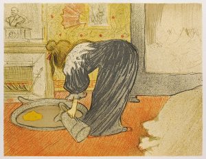 TOULOUSE-LAUTREC (Henri de). ELLES. Préface de Jean Vallery-Radot. Texte et notice de Jean Adhémar. MONTE-CARLO, ANDRÉ SAURET, 1952. Un volume, in-4, en feuilles sous chemise rempliée et illustrée en couleurs. Dos fendu réparé au papier...