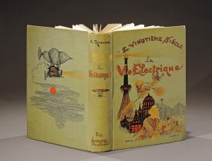 ROBIDA (Albert). LA VIE ÉLECTRIQUE - Le Vingtième Siècle. PARIS, LIBRAIRIE ILLUSTRÉE, 1890. Un volume, in-4, cartonnage éditeur au décor polychrome et or sur fond de percaline verte (Paul Souze & Engel). Tranches dorées. Papier de la...