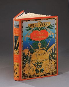 VERNE (Jules). LE PAYS DES FOURRURES. PARIS, HETZEL, s. d. (vers 1903). Un volume, in-8, cartonnage éditeur polychrome au globe doré, dos au phare, tranches dorées. Quelques petites rousseurs dans quelques marges. Cachets ex-libris à sec ou...