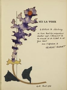 HUGNET (Georges). Ici la voix. Paris, Seghers, 1954. Petit in-4, broché, couverture illustrée.