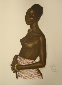 IACOVLEFF (Alexandre). Dessins et peintures d'Afrique. Paris, Lucien Vogel, 1927. In-folio, en feuilles pour les planches, dos de daim pour le texte, plats de soie noire avec motifs africains peints sur le plat supérieur, sous emboitage à rabat en...