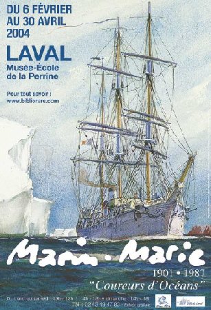 Marin Marie à Laval - 6 Février - 30 avril 2004 Musée-école de la Perrine - Espace Alain Gerbault 10, allée Adrien Bruneau - 53000 Laval ( Stationnement : Place de Hercé ) Exposition gratuite. Ouvert du mardi au samedi : 10 h - 12 h & 14 h - 18 h - Le dimanche : 14 h - 18 h &&& Authentique Marin mayennais ( il est né à Fougerolles-du-Plessis en 1901), Marin Marie croisa plus d'une fois la route d'un autre marin (lavallois celui-là), Alain Gerbault. Si le Commandant Charcot l'initie à l'aventure collective des grands voiliers, si les pêcheurs de Chausey sont à l'origine de son respect pour les gens de mer, c'est bien ce même Gerbault qui le conduira à affronter seul l'Atlantique à bord de la Winnibelle et de l'Arielle. L'espace Gerbault et le Musée-école de la ville de Laval (où Marin Marie exposa de son vivant) ne pouvait donc qu'accueillir l'exposition rétrospective déjà présentée à Saint-Briac et à Caen. Rétrospective ici largement renouvelée tant l'uvre peinte est riche et l'occasion de croiser 2 itinéraires de " Coureurs d'Océans " tentante. - 7 février (16 h) : Marin/Charcot - Destins croisés. - 19 mars (20 h 30) : Marin Marie - Un peintre de la marine mayennais. - 17 avril (16 ) : Marin Marie - Sur les traces d'Alain Gerbault. Renseignements : tél. (33) 02.43.49.47.83 Groupes scolaires : tél. (33) 02.43.53.90.86 & (33) 02.43.49.47.84 Organisation : tél. (33) 02.43.49.45.67 Contact presse : tél. (33) 02.43.49.45.41 E-mail : marie-claire.lesage@mairie-laval.fr E-mail : xavier.villebrun@mairie-laval.fr Site Mairie de Laval ( Mayenne - France ) : www.mairie-laval.fr |