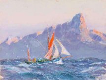 Né en 1901 à Fougerolles en Mayenne dans une famille bourgeoise, Marin Marie Paul Durand Couppel de Saint-Front est influencé dès l'enfance par une mère artiste, élève d'Harpignies, et par la découverte des îles Chausey où son père, passionné de navigation, l'initie dès son plus jeune âge à la mer. Étudiant en droit, il préfère la mer au code civil et suit le soir les cours de l'Ecole des Beaux-arts. En 1923-1924, il expose à la galerie Devambez à Paris, avant de partir accomplir son service sur le Pourquoi Pas? du Commandant Charcot chargé de missions de recherche et de sauvetage sur la banquise arctique. Il réalise alors un film et rapporte de ces expéditions une quinzaine de carnets de croquis qui lui permettront de réaliser de magnifiques toiles. Revenu à la vie civile en 1927, il peint, il expose. Il se marie avec Germaine Fauchon de Villeplé. Le voyage de noces est une croisière en mer d'Irlande, sur le Rose-Marine. Il travaille aussi dans l'affaire de son beau-père, à Saint-Hilaire du Harcouët. La passion du yachting, les régates, l'aventure de la navigation solitaire - traversées de l'Atlantique sur Winibelle II en 1933, puis sur la vedette Arielle en 1936 - se conjuguent avec sa vie de peintre, d'inventeur, de créateur en esthétique industrielle et navale. Il participe aussi à de nombreuses expositions dans les meilleures galeries. Il partage son temps entre Paris, Saint-Hilaire et Chausey, où il revient toujours: nombreux sont ceux qui l'ont rencontré au fil des années, sur les quais deGranville, sur la terrasse de sa maison devant le Sund ou dans son atelier. En 1935, il est nommé Peintre de la Marine. Mobilisé en 1939, il vivra sur le Strasbourg la tragédie de Mers-el-Kébir, puis assistera à bord du Fantasque au combat historique de Dakar. À partir de 1942, il ne fait plus que quelques croisières comme Peintre de la Marine ou avec sa famille. Il publie en anglais Wind aloft-wind alow, récit illustré de ses deux traversées en solitaire. Il participe régulièrement aux Salons de la Marine, illustre différents ouvrages (Pêcheurs des quatre mers de Roger Vercel, Gens de Mer d'Edouard Peisson) et écrit le Livre d'Or du yachting. Un dernier grand voyage à Bora-Bora, en 1969 lui permettra de rejoindre son fils Yves et de peindre à ses côtés les paysages polynésiens. Il meurt en 1987 dans sa maison de Saint-Hilaire du Harcouët, titulaire de nombreuses distinctions tant dans le domaine maritime qu'artistique. Mme Michelle Chartrain (du musée du vieux Granville) |